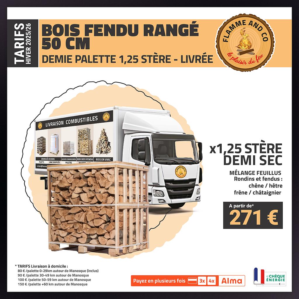BOX de bois fendu 50cm de 1M3 livré